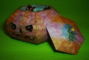 An easy-to-build Pumpkin Candy Box, with a "Bad Attitude" face, to decorate your Halloween party, in two versions: color and black and white. by Papermau.
