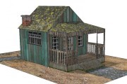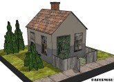 This is a very simple paper model of a little house with some bushes. The model occupies only two sheets: one for the house and fence and one for the bushes.