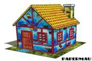 This is the Green Wood House, a simple paper model in three sheets of paper.