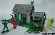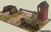 This stand/diorama of a Guardhouse Paper Model With Sandbag Barricade fits nice with 1/25 scale figures and with Playmobil miniatures.