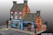 Here is the "Three Simple Shops" diorama, ready to download. The whole model occupies only three sheets of paper.