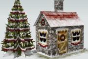 Here is an easy-to-build paper model of a Winter House with Christmas decorations.