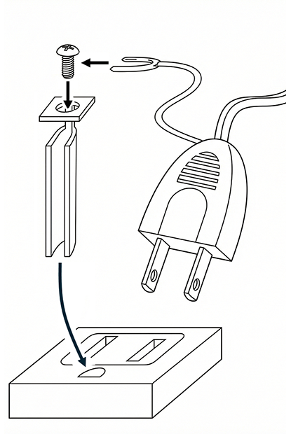 コンセントの接地極に差し込んでおけば、接地極付きコンセントを接地端子付きコンセントのように使用できます。